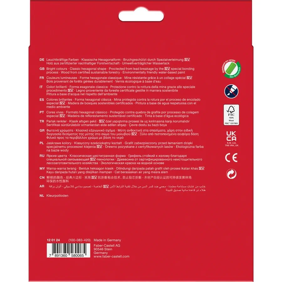 Crayons de couleur hexagonaux Couleurs étincelantes Forte résistance à la casse de la mine grâce à une colle spéciale Bois issu de plantations certifiées exploitations durables Étui en carton de... Descriptif