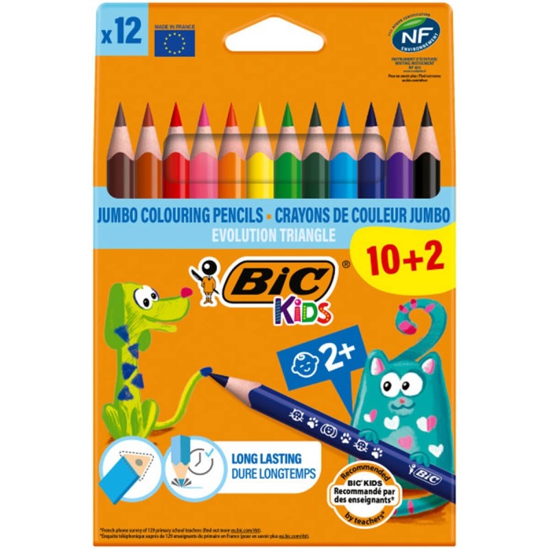 Crayon triangulaire en résine synthétique Modèle triangulaire pour une prise en main confortable. Résistant aux morsures. Aucun risque d'éclatement. Broche extrêmement résistante aux chocs. 10 + 2 crayons de... Descriptif