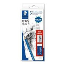 Lot de 6 crayons Lumograph + taille-crayon et gomme Staedtler