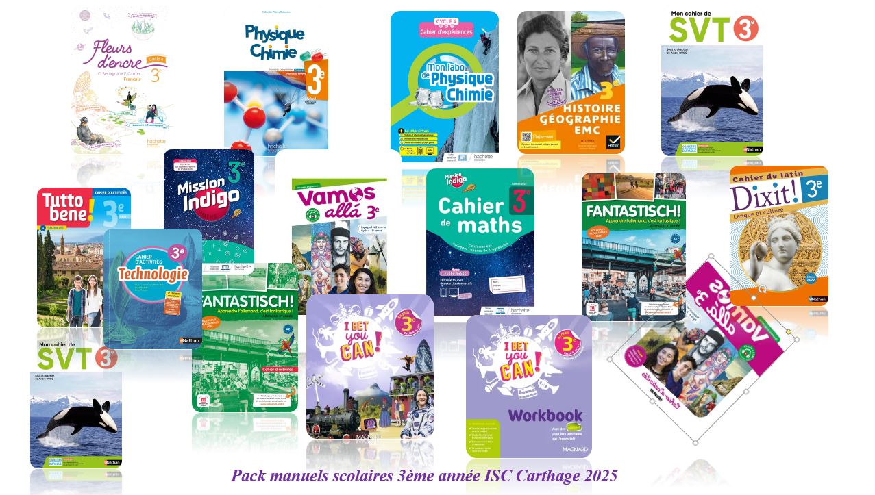 Pack manuels scolaires 3ème année ISC Carthage 2025