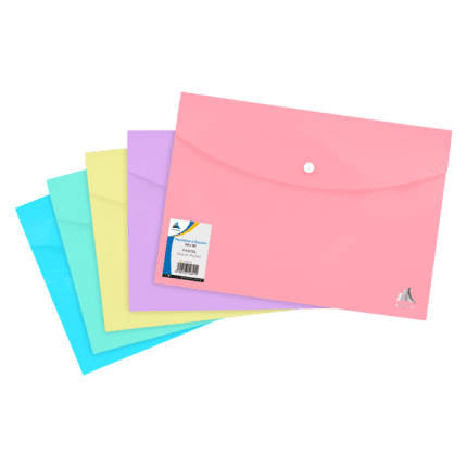 Pochette à bouton Pastel, conçue en polypropylène opaque garantissant la confidentialité de vos documents (Epaisseur 150µm) avec un effet brillant. Equipée d’une fermeture sécurisée avec bouton à pression, se déclinant en 5 coloris Pastel. Cette pochette est disponible en dimensions 24×32 pour les documents de format A4.